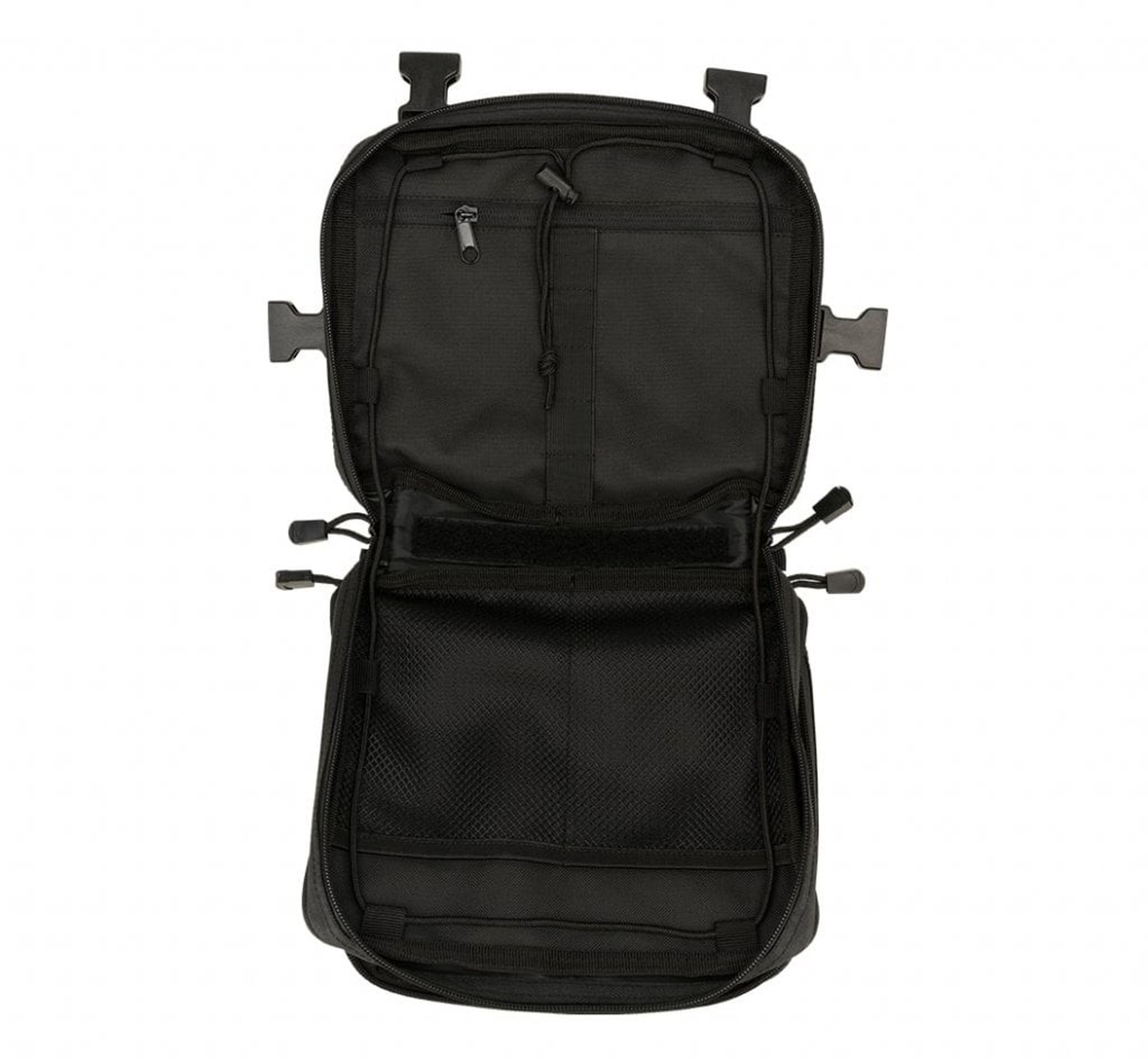 Inside the bag there is a compartment with a zipper and MOLLE loops with Velcro. The bag also has 2 mesh pockets, 2 D-rings/key ring.