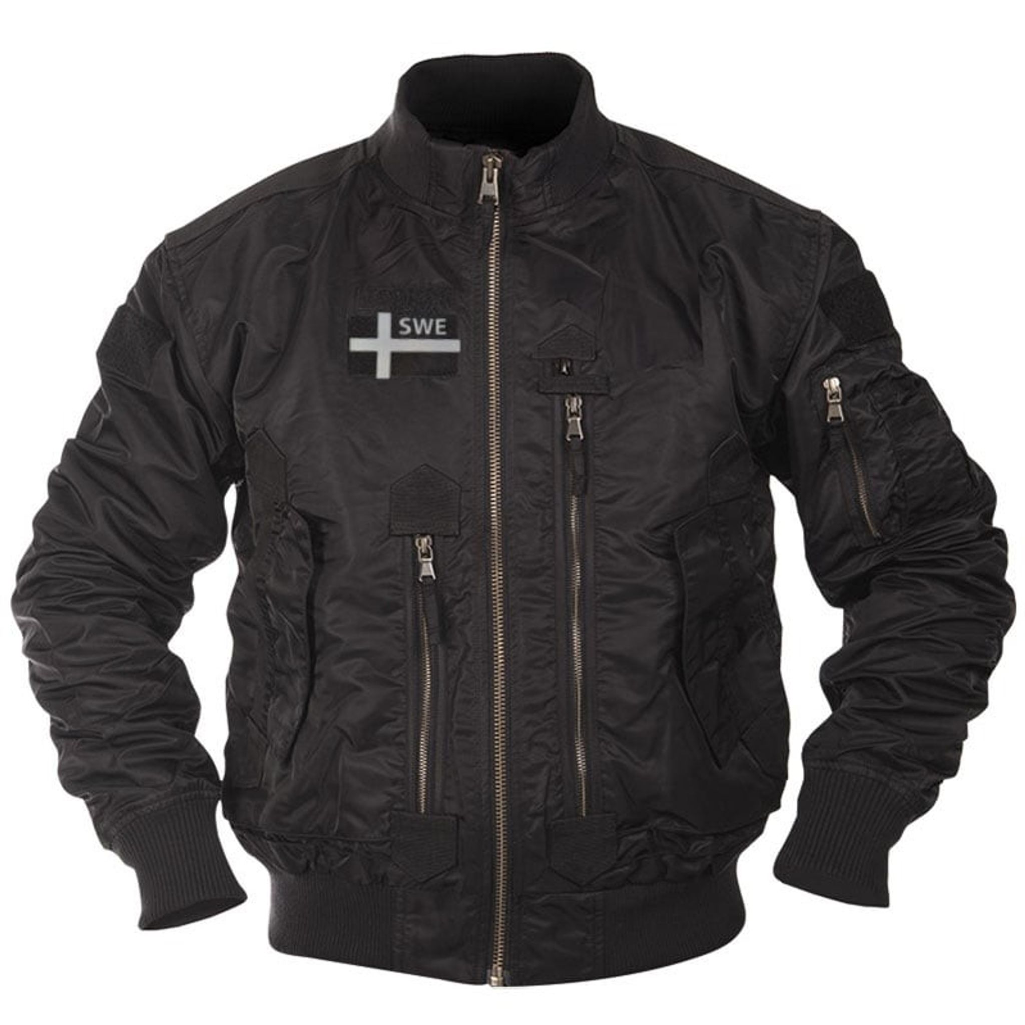 On the right chest adorns the Swedish flag in black and grey, with the elegant text "SWE" embedded in the flag's pattern. This removable patch not only symbolizes your pride and connection to Sweden, but also gives a personal touch to the jacket.