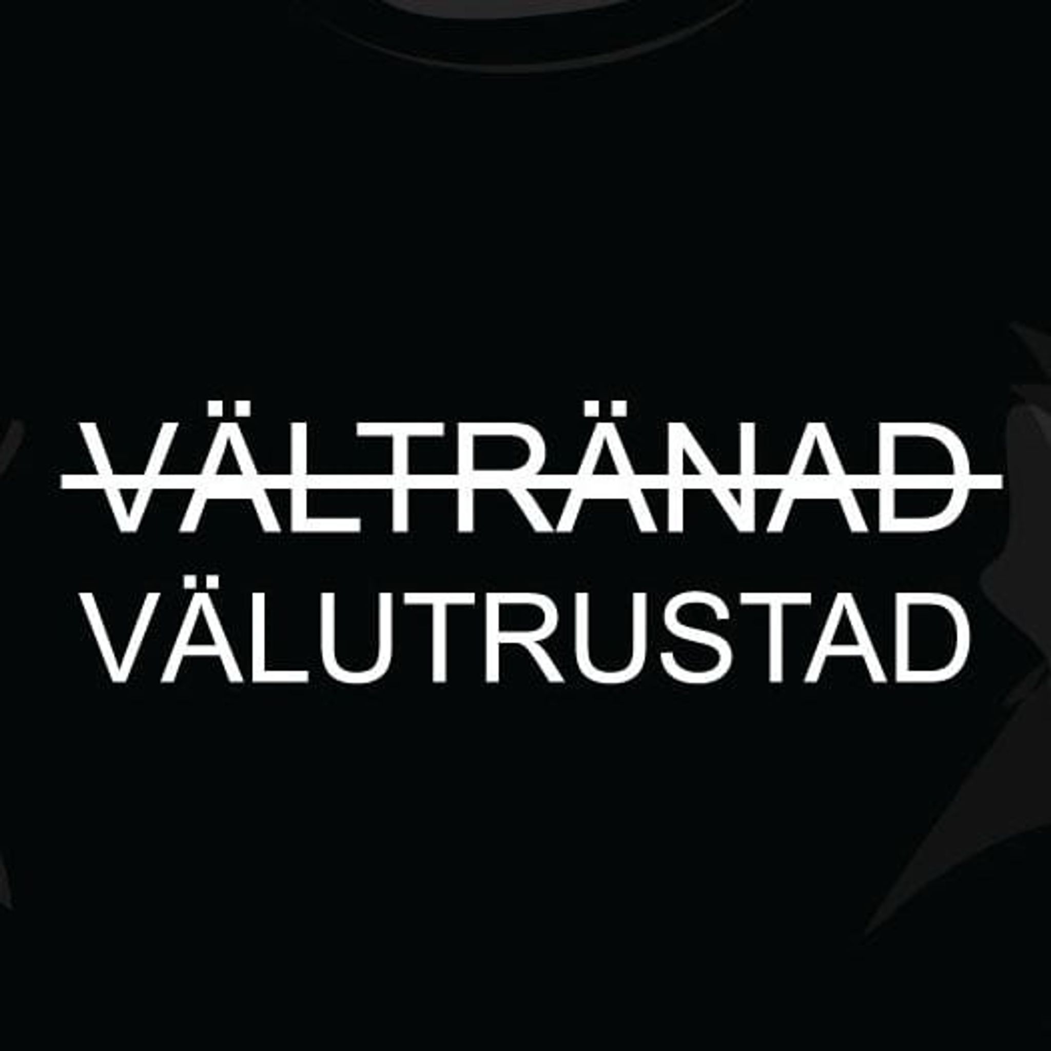 T-shirt med texten: VÄLTRÄNAD (med ett streck över) VÄLUTRUSTAD