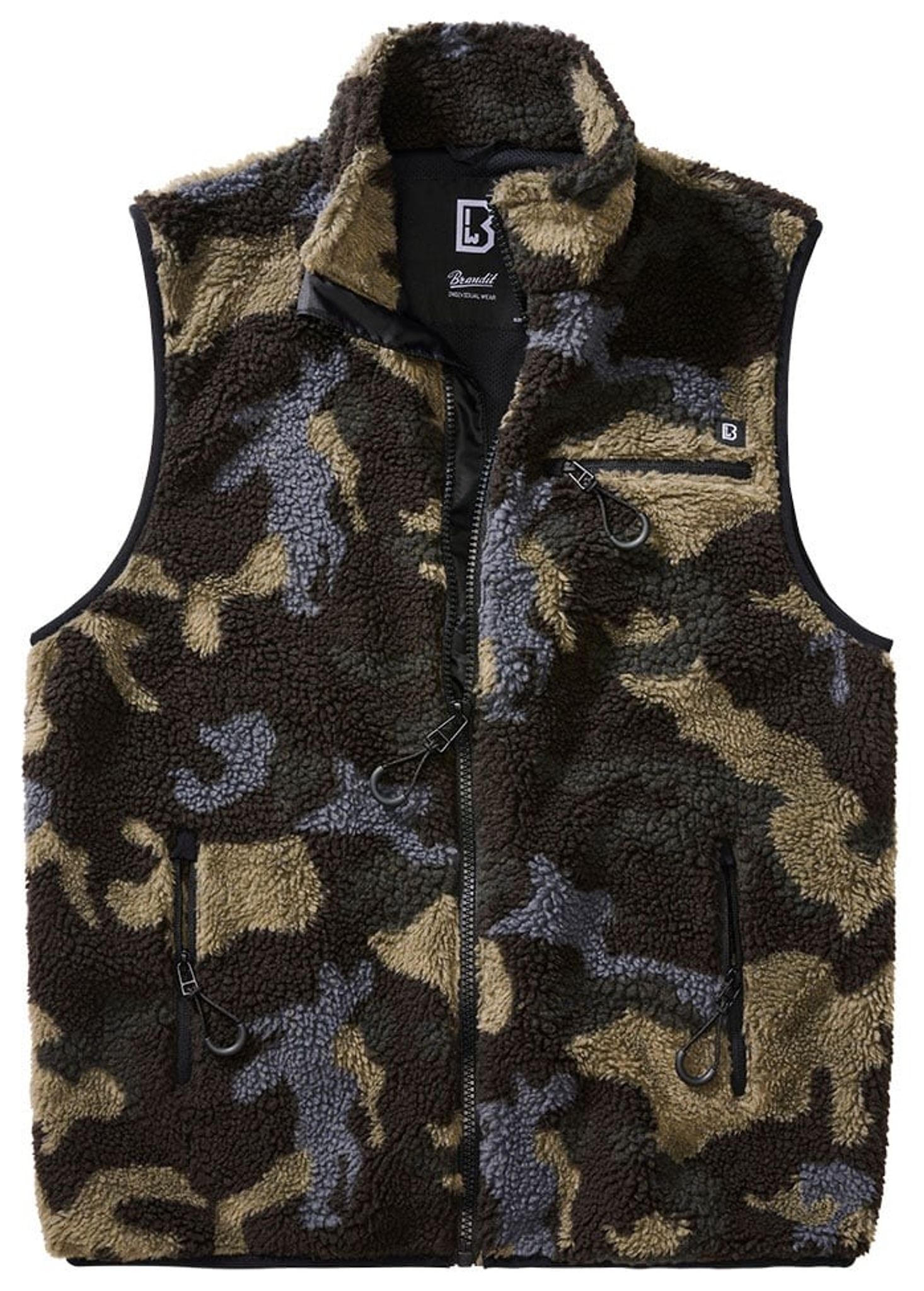 A comfortable vest in a lighter version of the classic darkcamo. The outside of the vest is covered in soft teddy fleece. The vest is a perfect garment when you want to keep your body warm but still want your sleeves free and mobile.