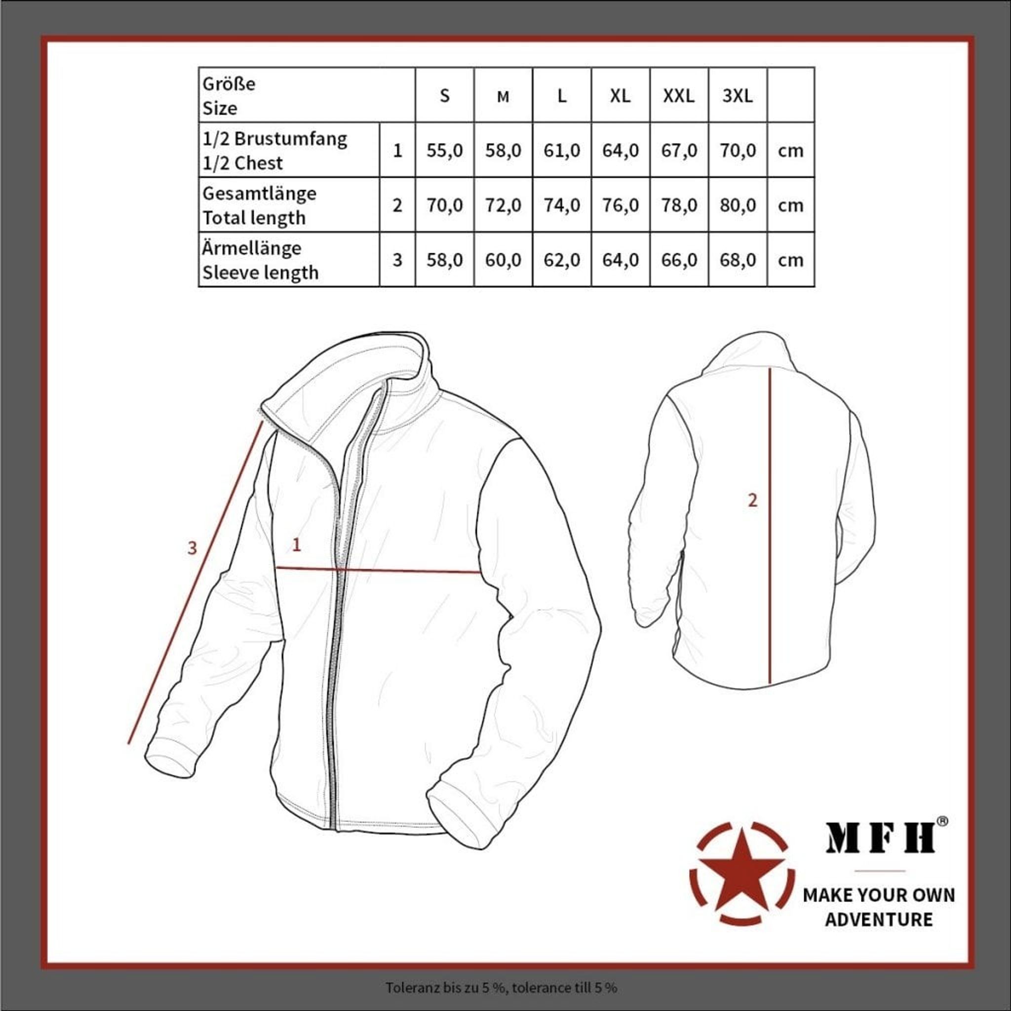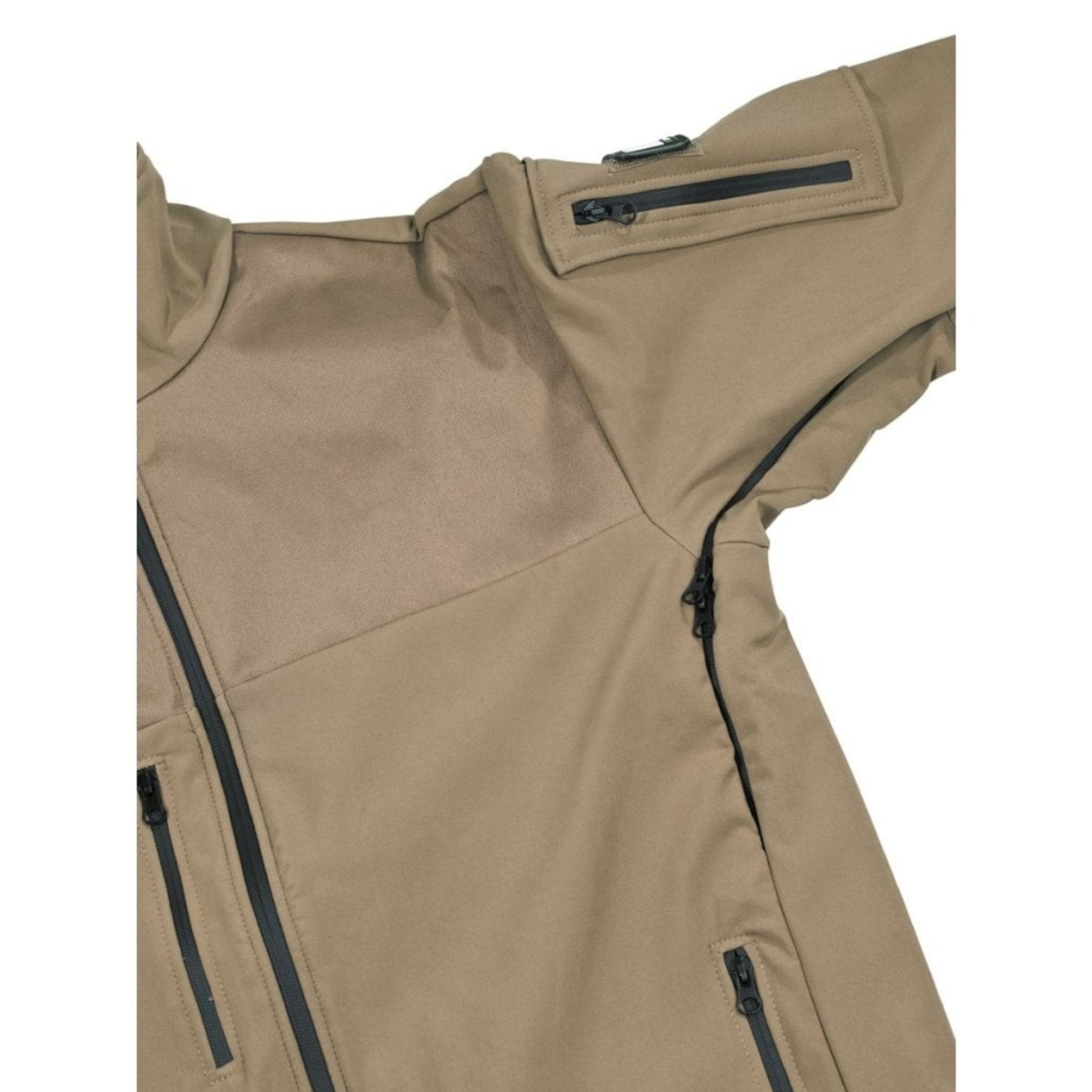 The jacket has a chest pocket with a zipper and an arm pocket.