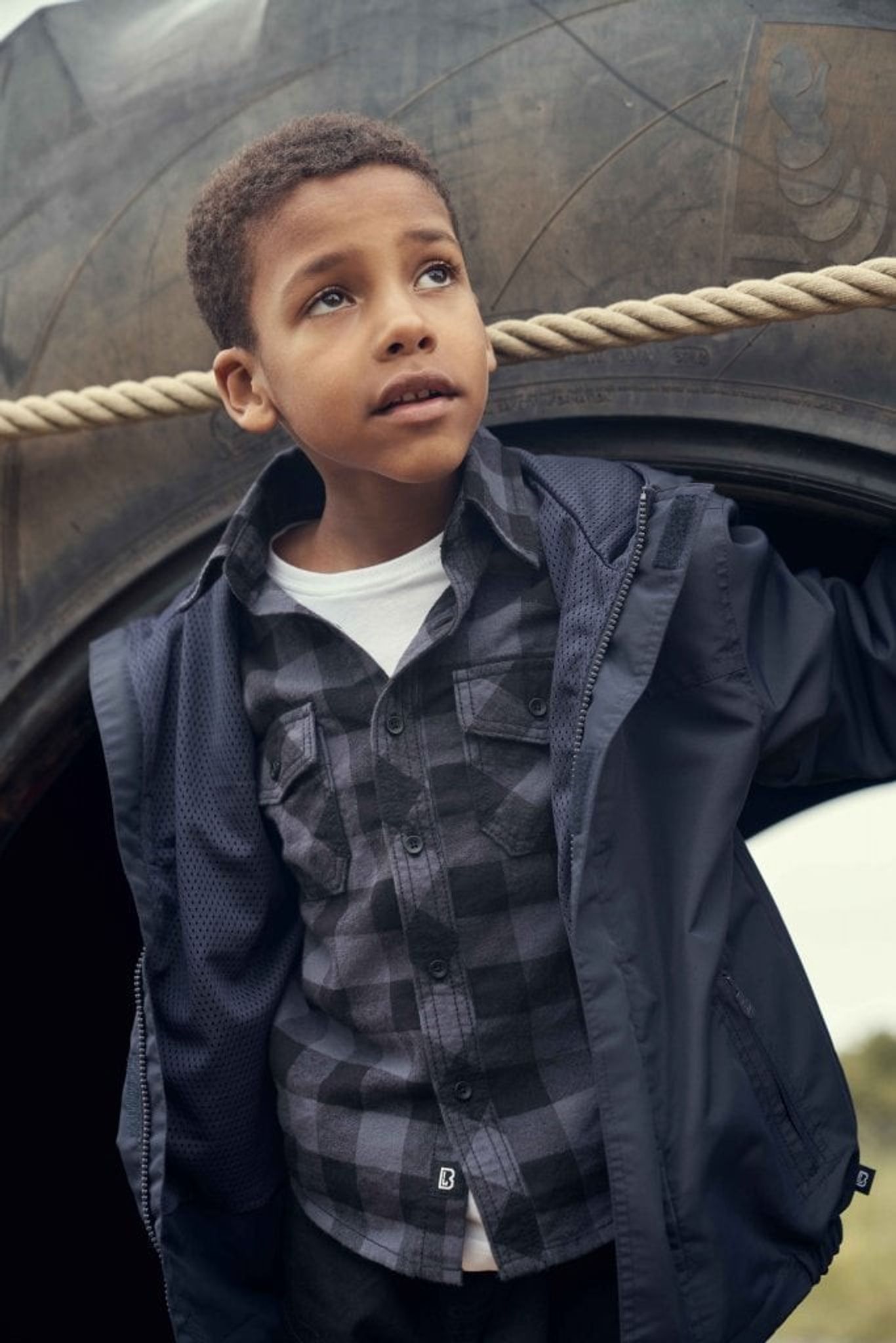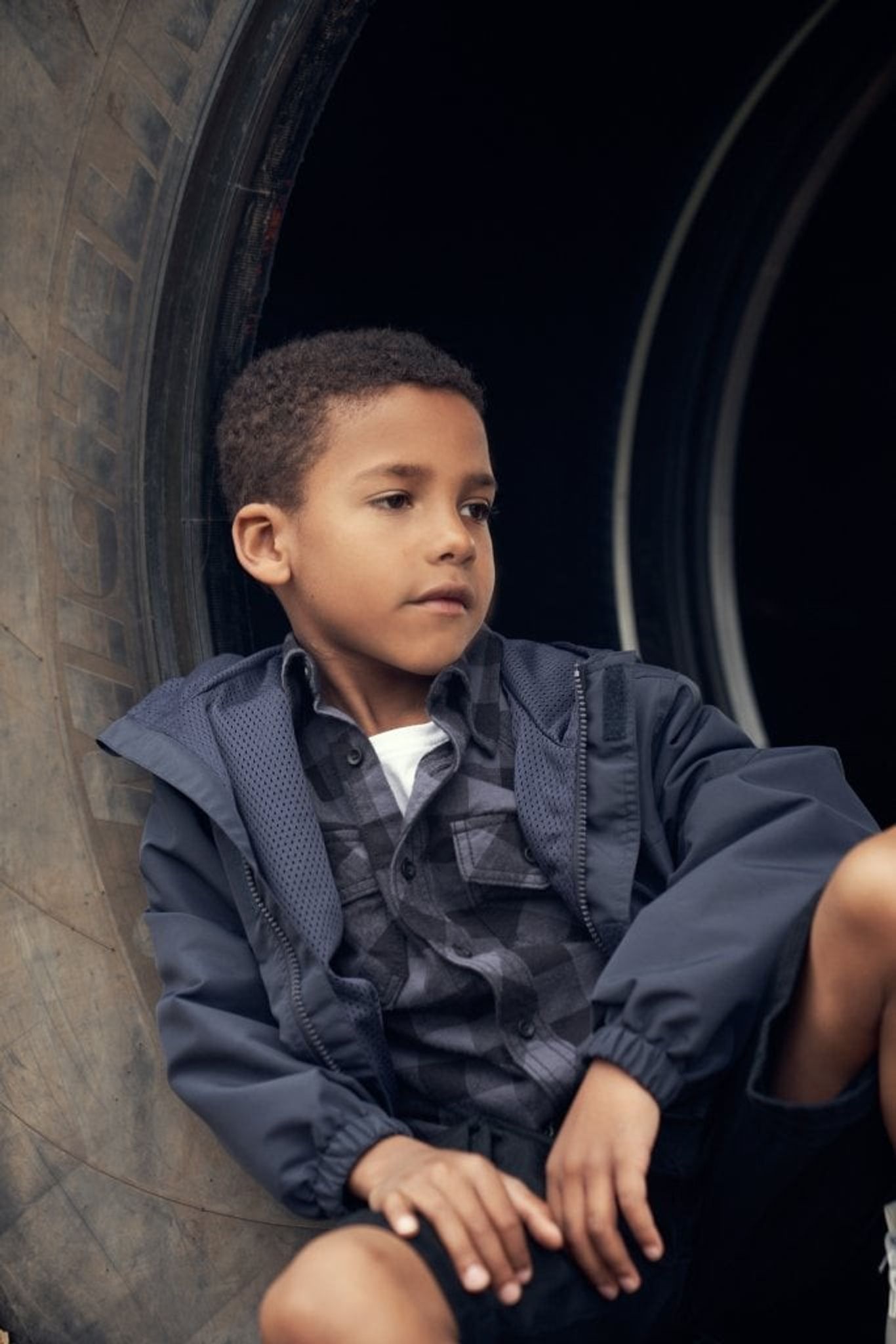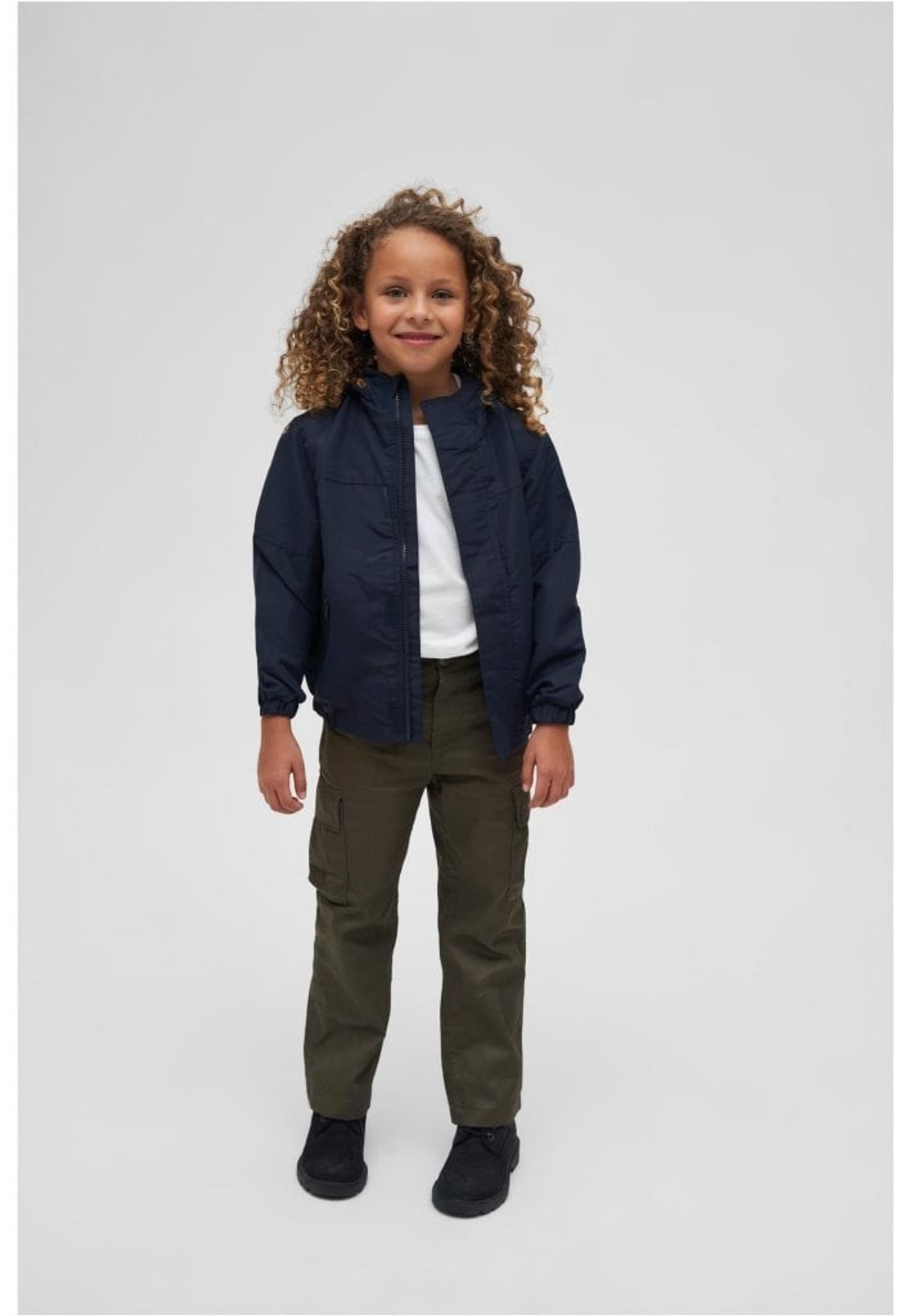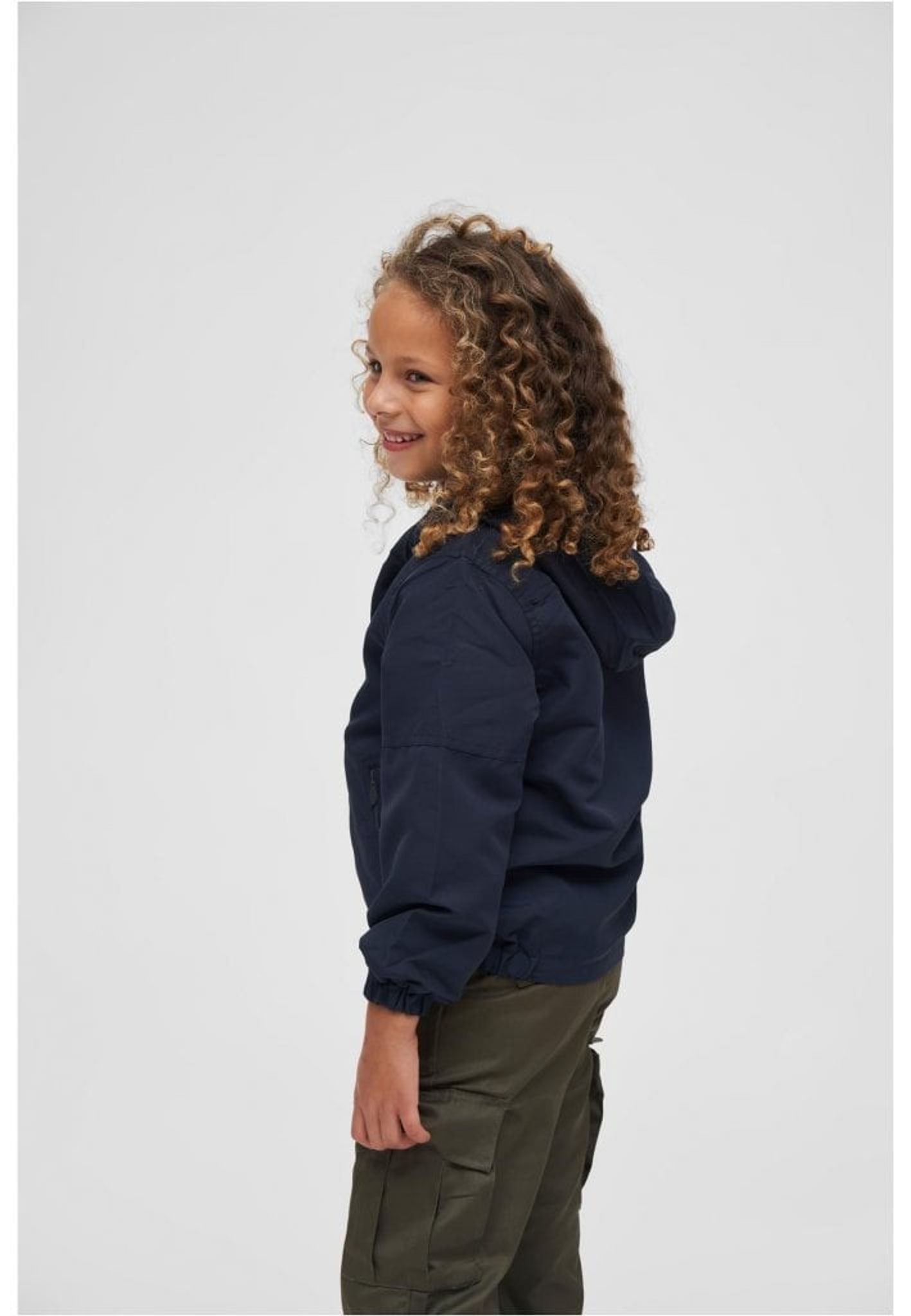 A navy blue windbreaker with a shell that is resistant to both wind and water. The mesh lining has a good breathability.