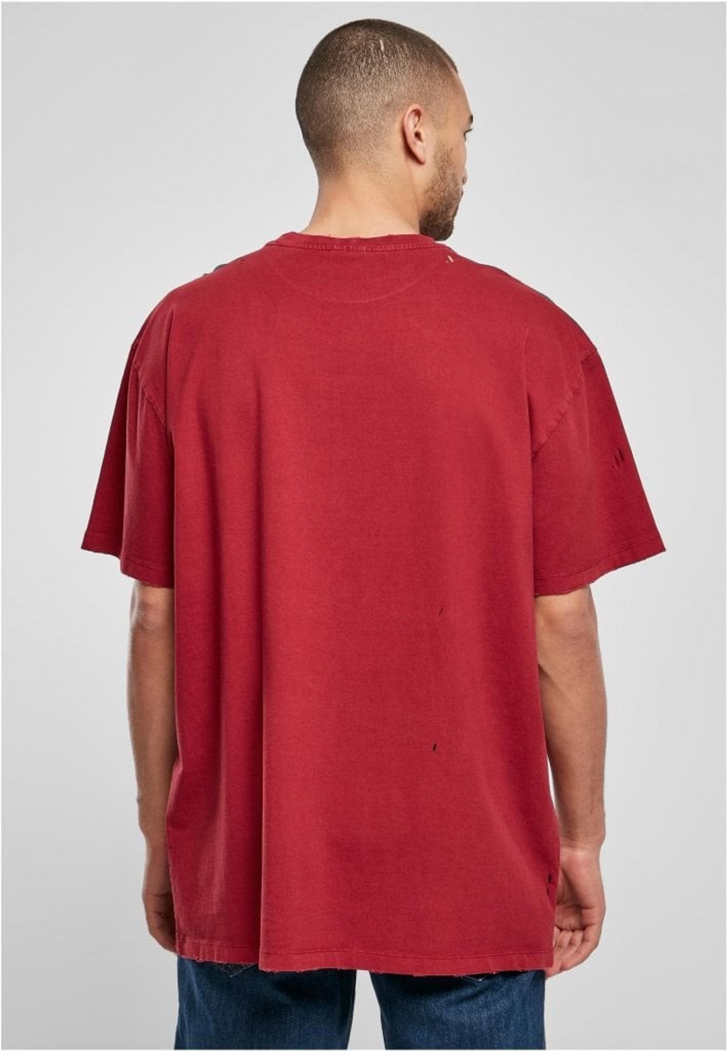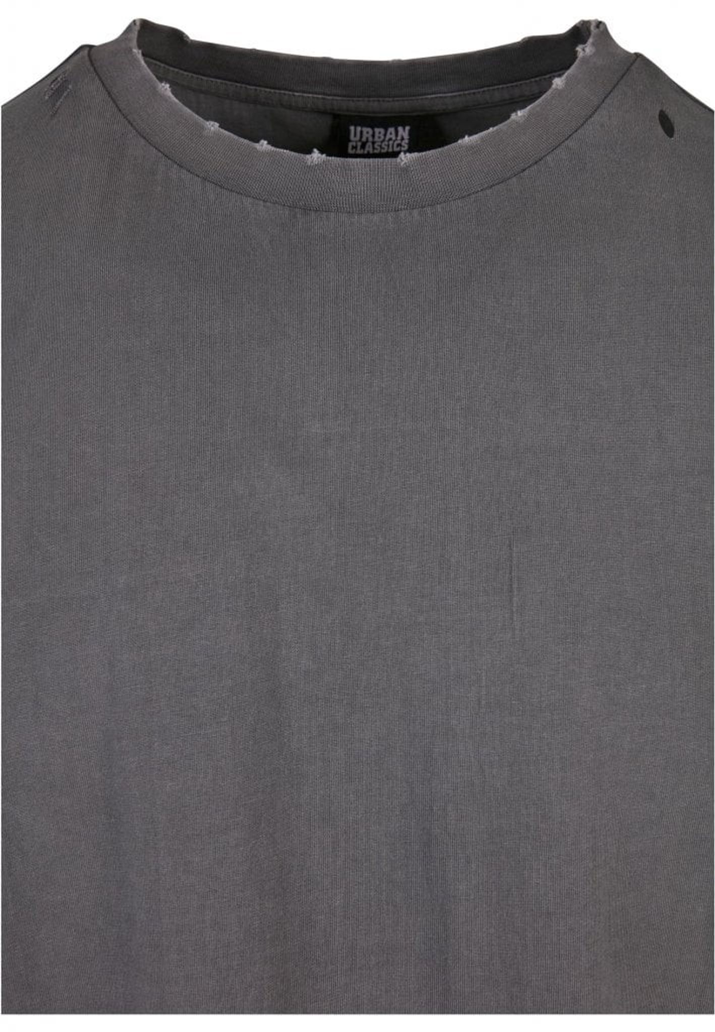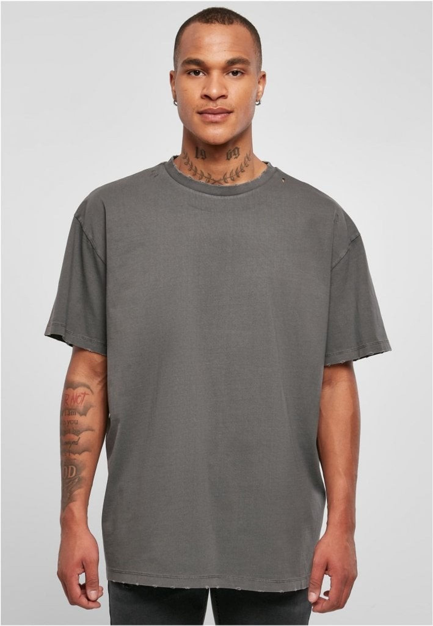 A T-shirt in a thicker oversize model with a weight of a whopping 240gsm. It has everything like a regular oversize t-shirt with its relaxed style, but this one is also extra worn with some holes and ragged edges at the cuffs.