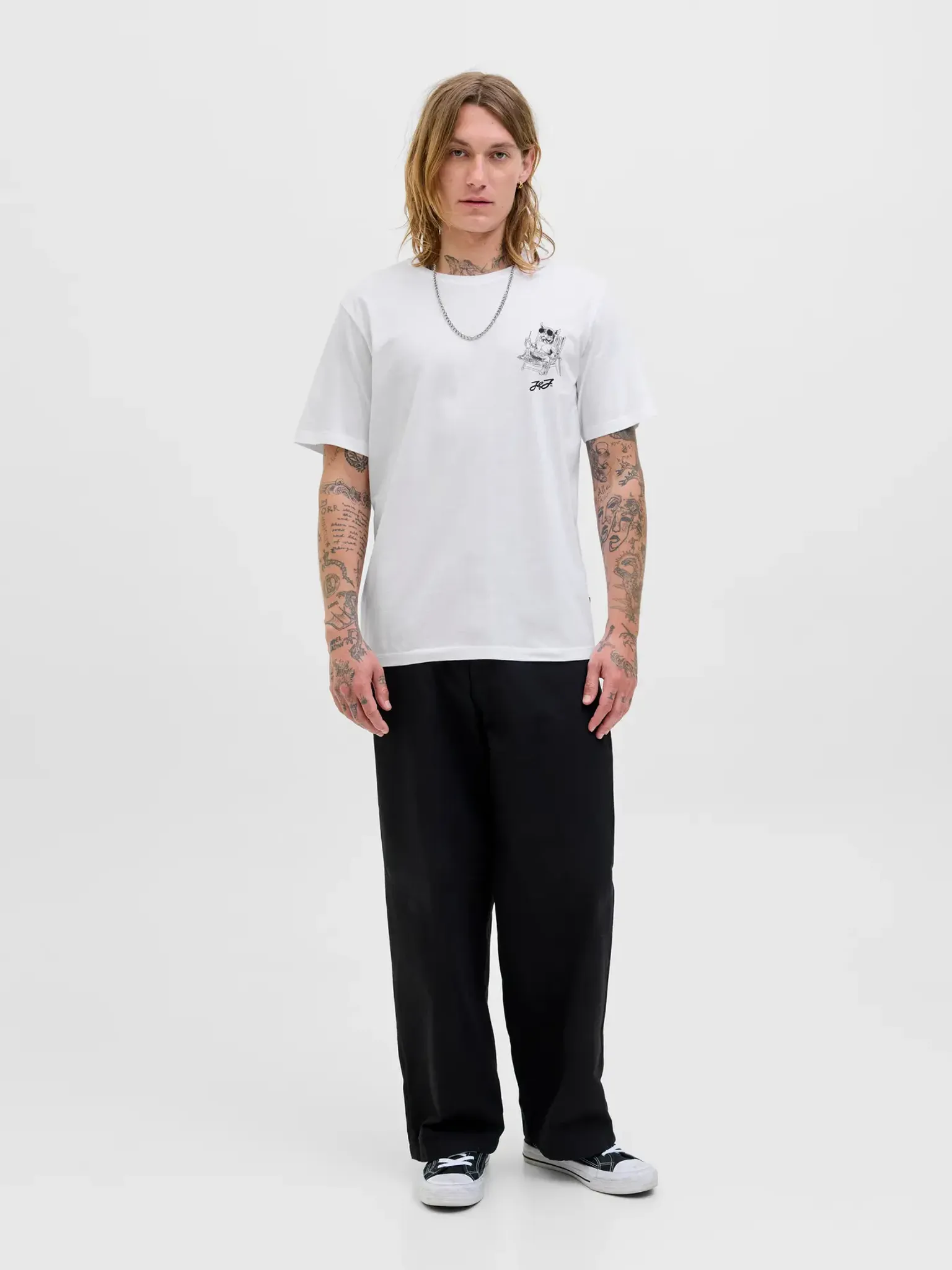 Den vita färgen gör att du enkelt kan matcha T-shirten med allt från jeans och shorts till overshirts och hoodies. En stilren bas med en hint av humor – det perfekta tillskottet i garderoben.