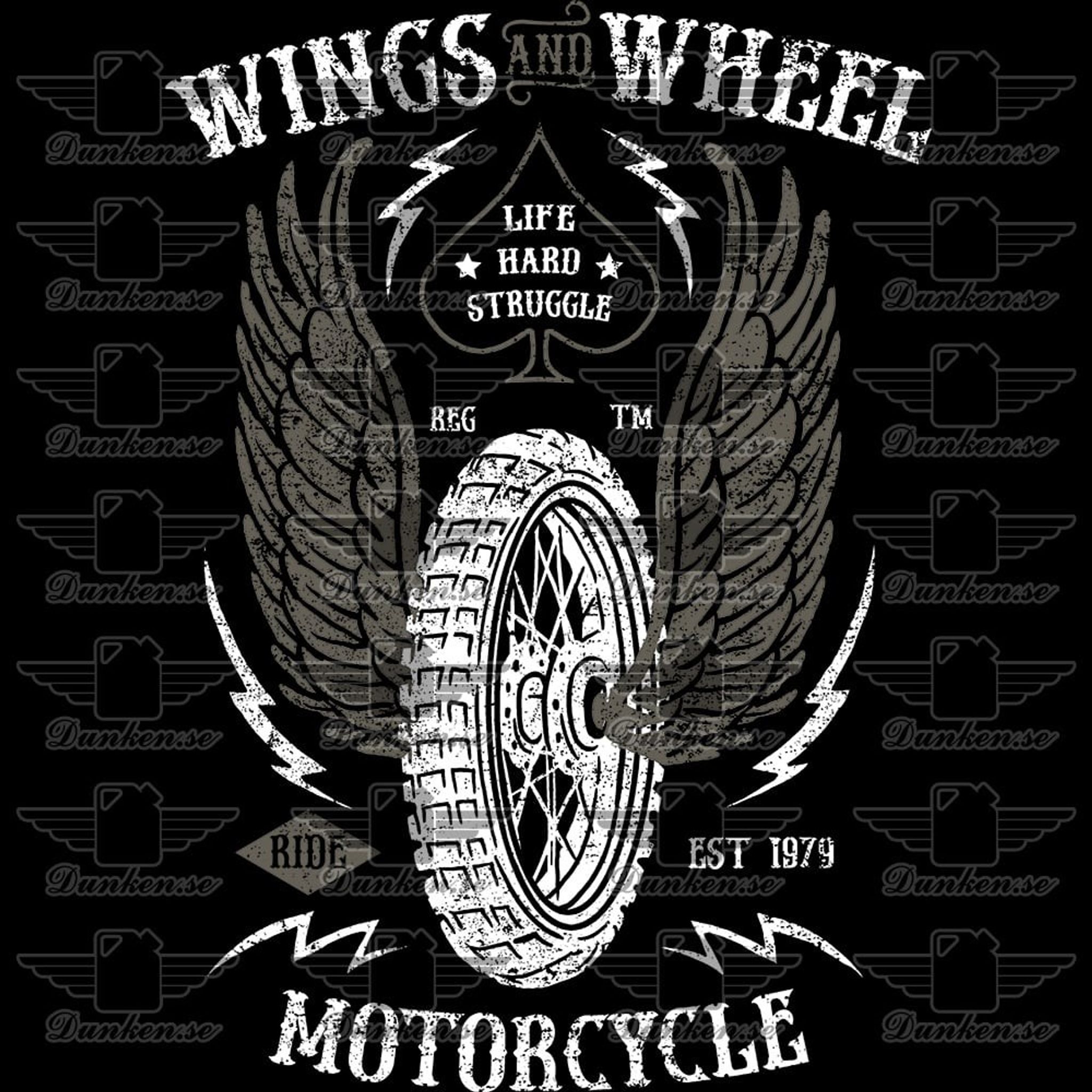 A really nice t-shirt with a winged motorcycle tire.